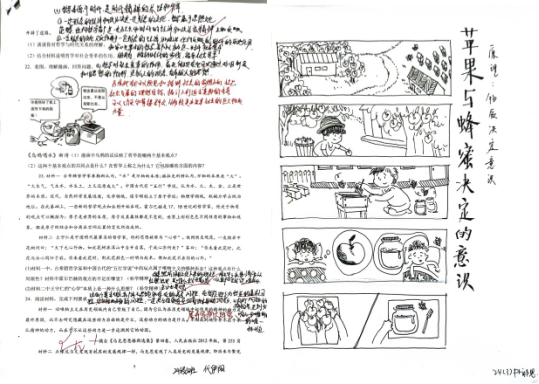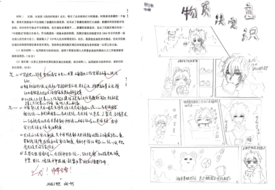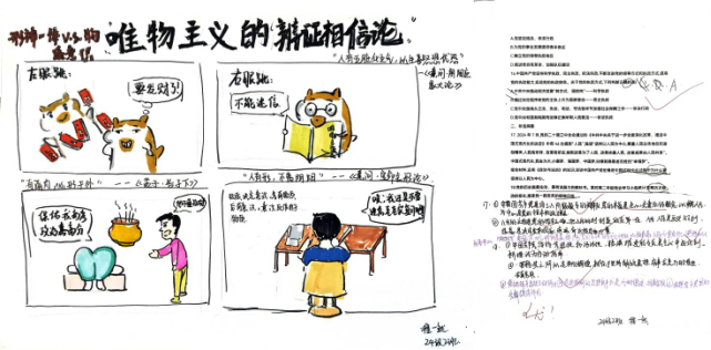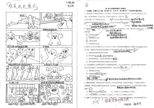本次政治暑期作业采用书面练习与趣味漫画相结合的方式,引导学生在实践中深化对理论知识的理解,将抽象概念转化为具体认知,真正实现了从理解到认同、从认同到行动的逐步深化。通过完成这类多元化的作业,学生不仅巩固了基础知识,更培养了逻辑思维、艺术表达与跨学科整合的能力。