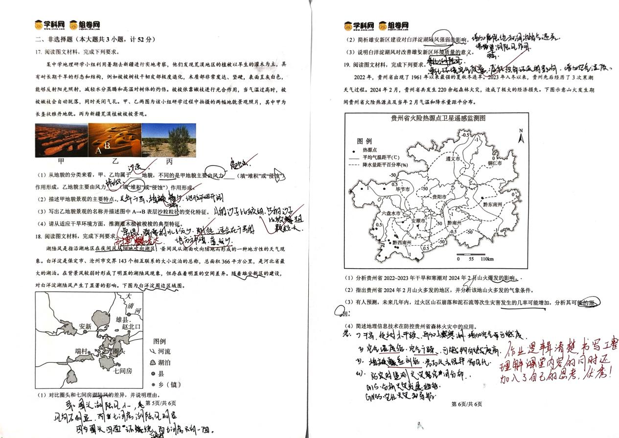 本次地理暑假作业遵循新课标理念,通过系统性试卷练习帮助学生巩固基础知识,通过绘制中国自然与人文景观图深化对区域地理特征的理解,有效提升综合思维能力。在这一过程中,同学们增强了民族自豪感与爱国情怀。这些优秀作业展现了附中学生出色的地理实践力、扎实的图文表达能力与丰富的创新思维,体现了同学们良好的学科素养和综合运用能力。