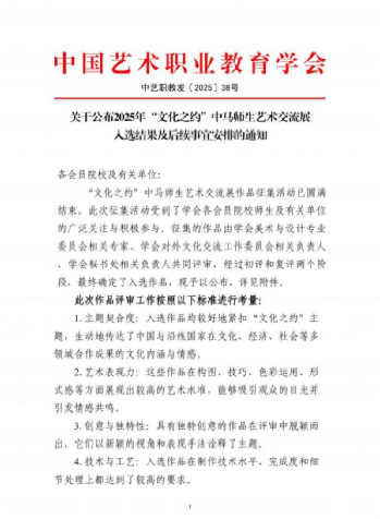 组织师生参加国内外各类展赛。参加第五届中法环境月艺术大赛&纪元2046超媒介艺术海选,学校获优秀组织单位奖,学生及指导教师获奖各12人次;参加中国艺术职业教育学会2025年“文化之约”中马师生艺术交流展,入选5人次;筹备参加中国艺术职业教育学会文化创意工作委员会主办的第三届“山海杯”文创节——文化创意技能大赛。