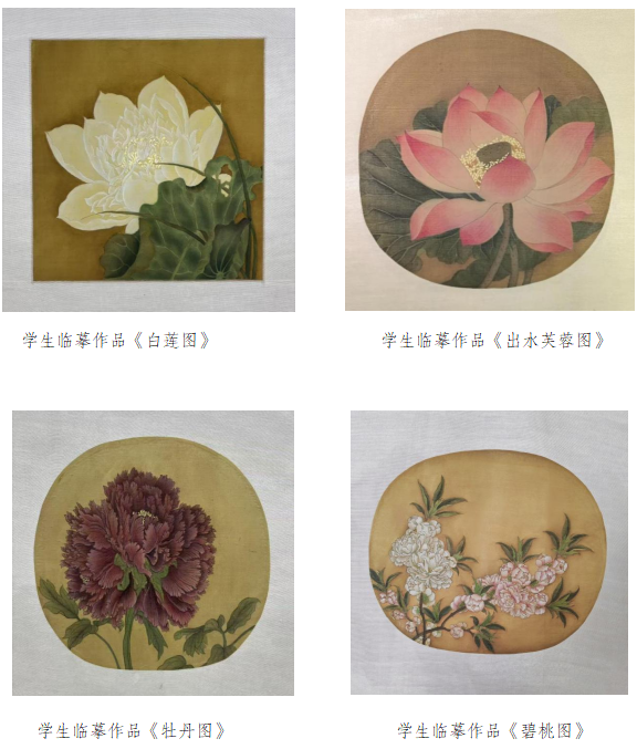 该课程引导学生赏析名画,构建传统美学认知,通过临摹实践训练其工笔重彩技法。在教授中国画技艺的同时,引导学生体会传统文化之精髓,建立起对中国花鸟画的基础认识,理解“格物致知”“以形写神”的精神内核,为其铸就“传统之根”。