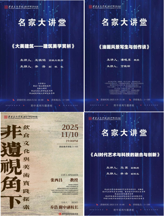 在系列讲座活动的组织中,学校持续深化西安美术学院“五名”战略,重点强化“人工智能+”在美术教育与创作中的融合探索,全年共开展4期专题讲座,内容覆盖AI时代艺术与科技、油画风景写生、建筑美学以及非遗视角下的饮食文化与美术等前沿议题,突出智能技术赋能艺术学习与创作的新路径,为师生适应未来艺术生态提供了前瞻性引导。