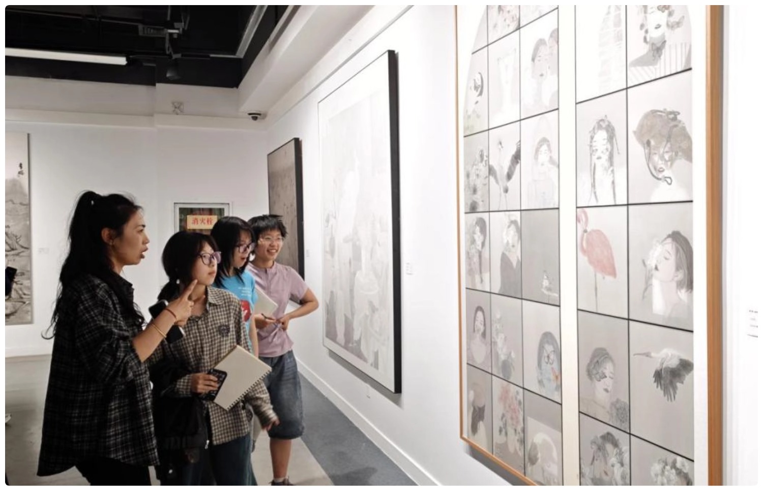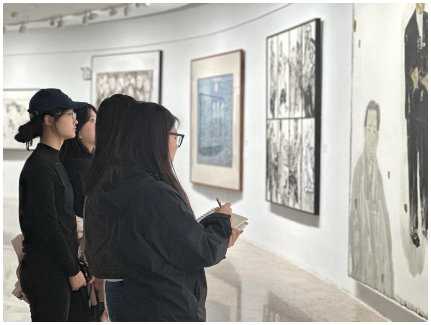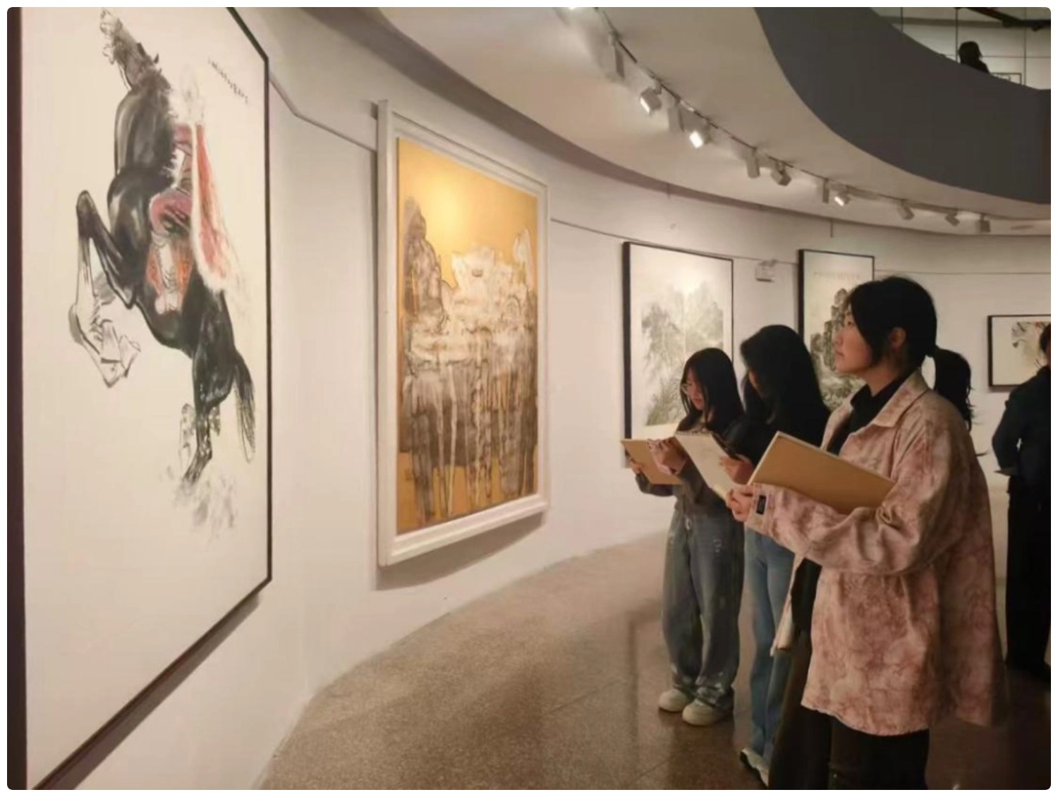 围绕此次展览,学校精心策划了“观展+讲解+临摹”一体化实践方案,将课堂教学延伸至高水平展览现场。附中学子在中国画工笔、写意、没骨等多样艺术语言的交融中,近距离研习当代中国画创作的前沿成果。教师针对不同作品的艺术特色进行分析讲解,引导学生在临摹中理解传统笔墨与时代脉搏的交相呼应。一位2024级学生表示“在现场面对原作临摹,笔触的力度、墨色的层次都更加直观,这种体验是无法替代的”。