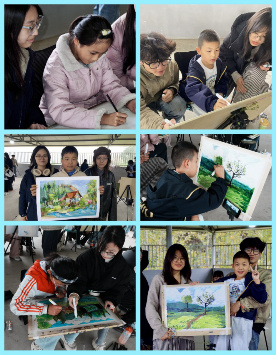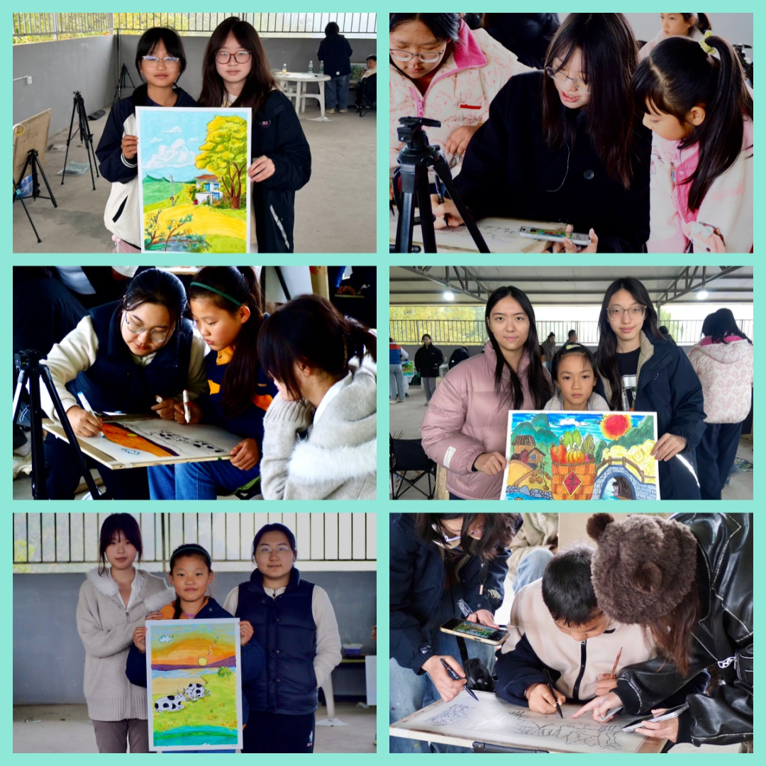 西美附中2024级学生外出写生期间,团学会精心组织“丹青绘家乡 美育润童心”主题活动,将专业写生实践与美育互动服务相结合,达成艺术实践与社会服务的深度融合。