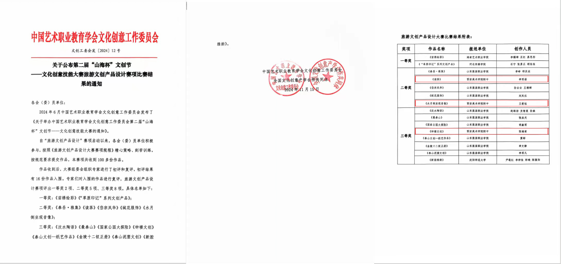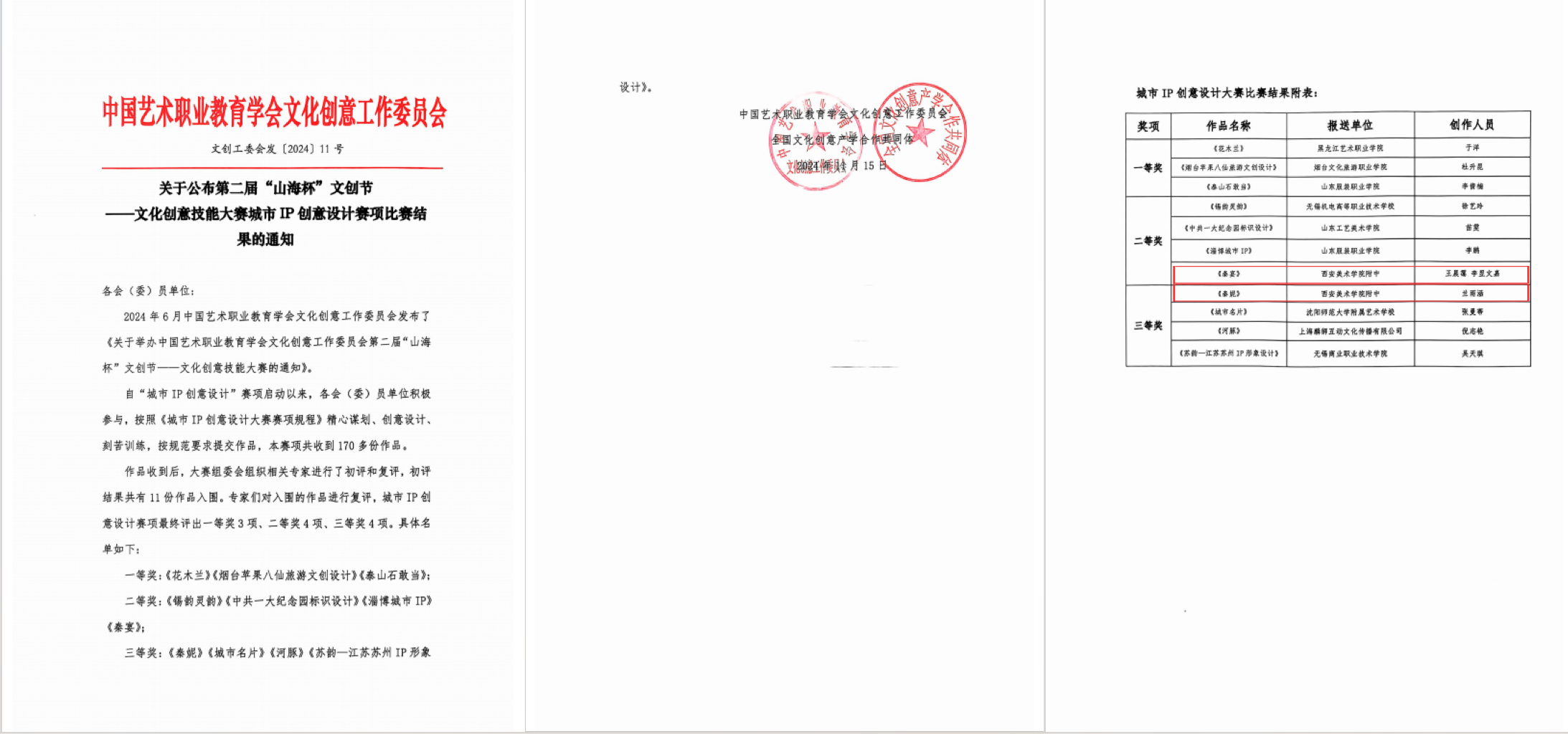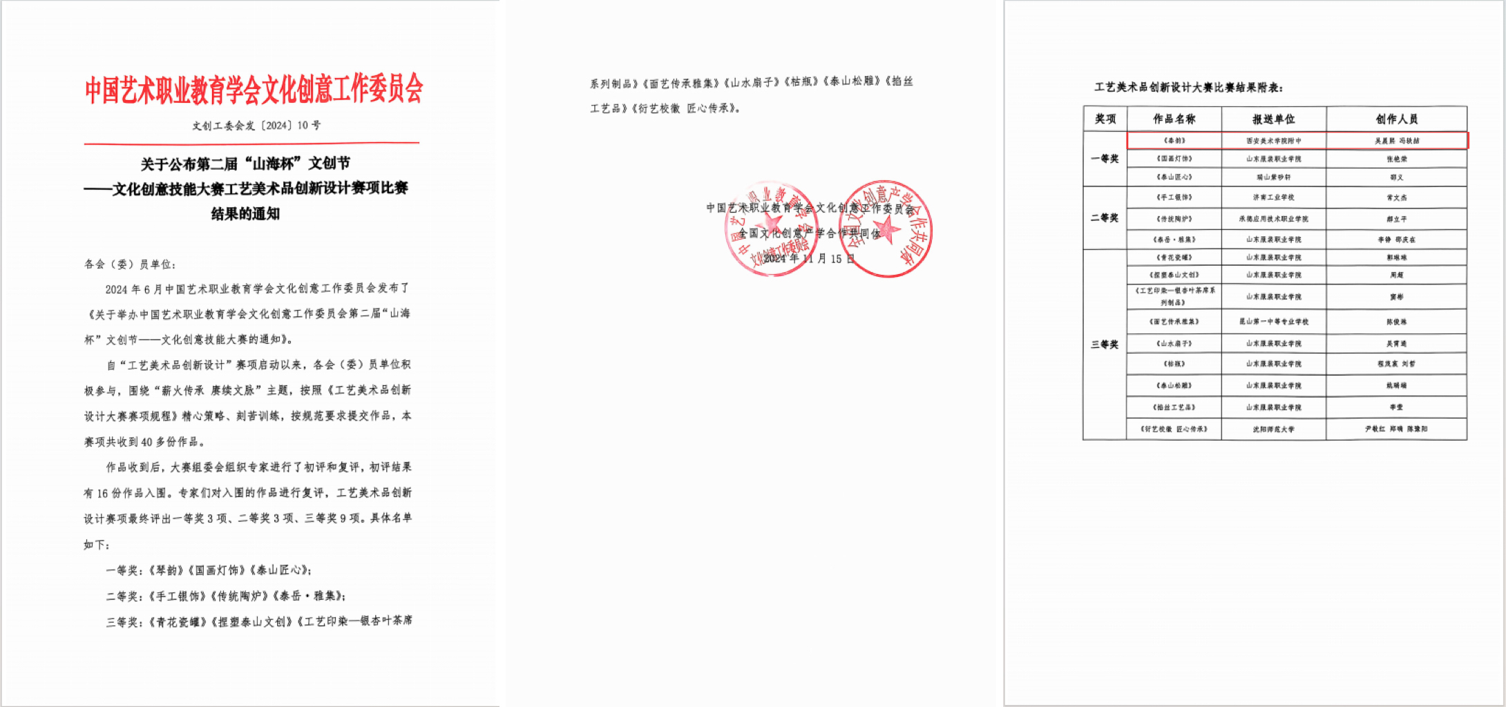 1.中国艺术职业教育学会文化创意工作委员会主办第二届“ 山海杯”文化创意技能竞赛比赛结果公告