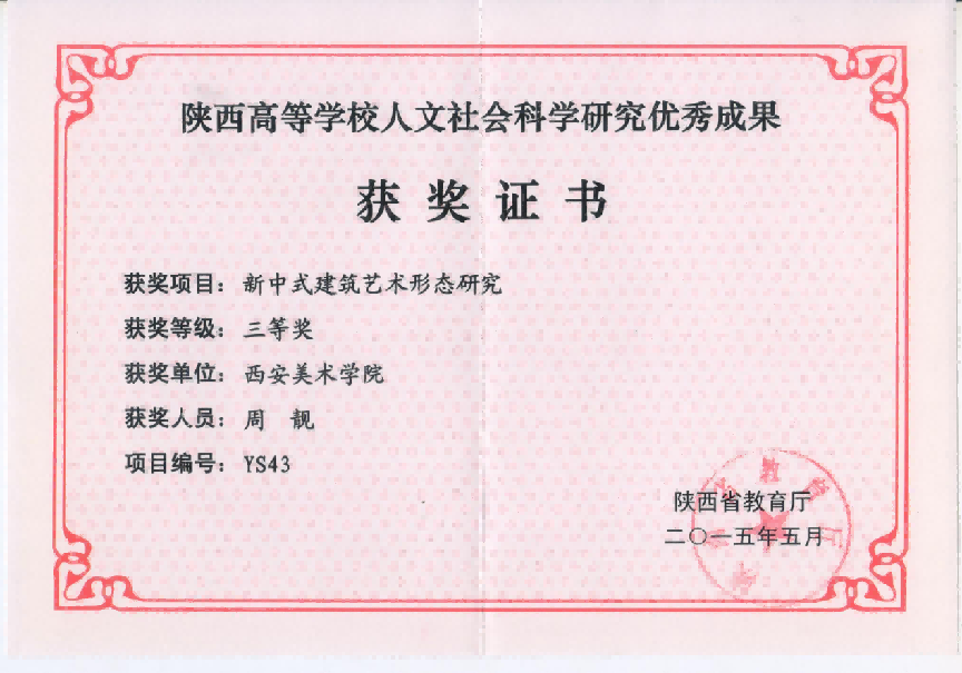 4.2015 年陕西高校人文社会科学研究成果三等奖(2015年)