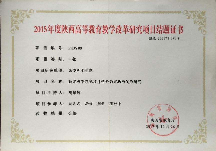 4.2015 年陕西省教育厅教改课题结题证书(2015年)