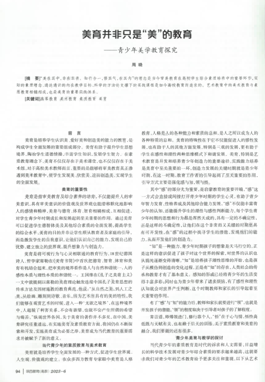 7.《美育并非只是“美”的教育——青少年美育教育探究》
