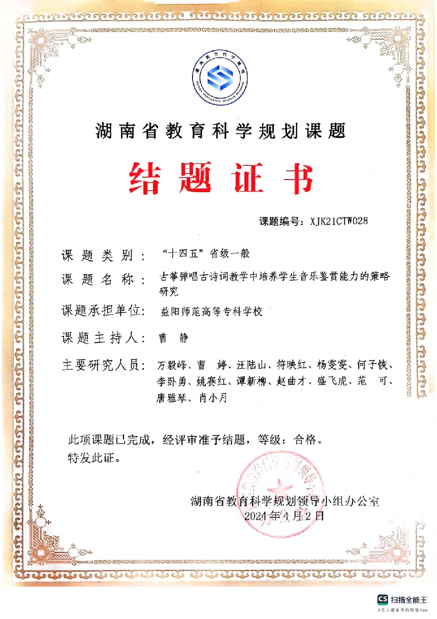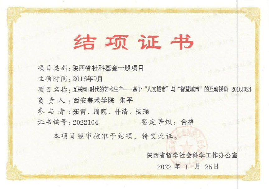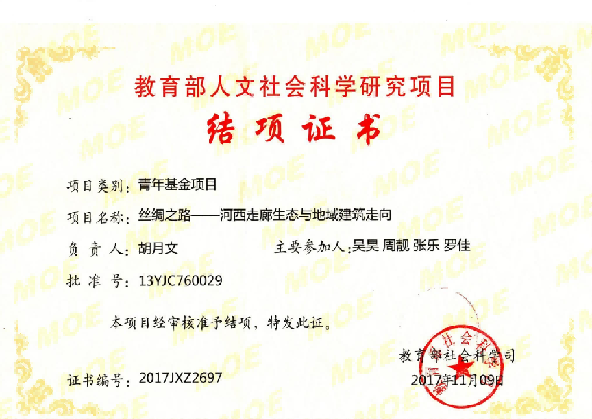 1.教育部人文社会科学研究项目结题证书(2017年)